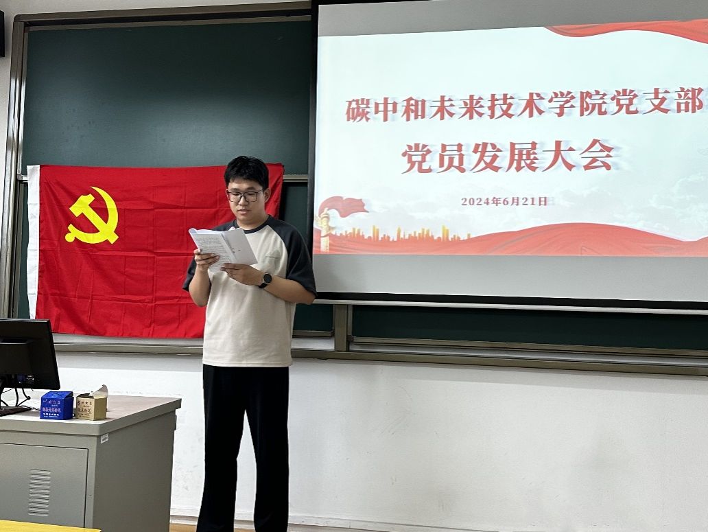 会上,支嘉垚宣读了《入党志愿书》,并向党组织汇报了自己在培养期间的表现、主要优缺点、今后的努力方向及需要向党组织说明的问题。入党介绍人介绍了对申请人的培养考察情况,并发表个人意见。经过与会党员的讨论和正式党员的投票表决,大会一致同意接收支嘉垚同志成为中共预备党员。支嘉垚表示,作为新时代的青年员工,将按照《党章》规定严格要求自己,不断加强党性修养,脚踏实地,努力学习,潜心科研,用实际行动践行入党誓言。