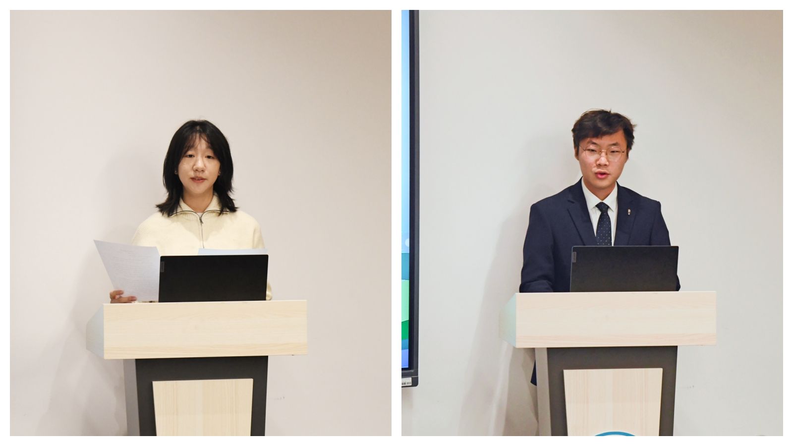 随后,冯昀卿(低碳城市运维方向,土木工程专业)、马雨菲(零碳流程核算方向,材料科学与工程专业)作为本硕博贯通班员工代表发表感言。他们回顾了自己进入谈球吧官方网站学习的心路历程,从初入“双碳”领域的迷茫探索,到课堂上与前沿知识的激烈碰撞,再到深度参与实践环节的磨砺蜕变,生动展现谈球吧官方网站学子投身“双碳”事业的坚定信念与勇毅力量。
